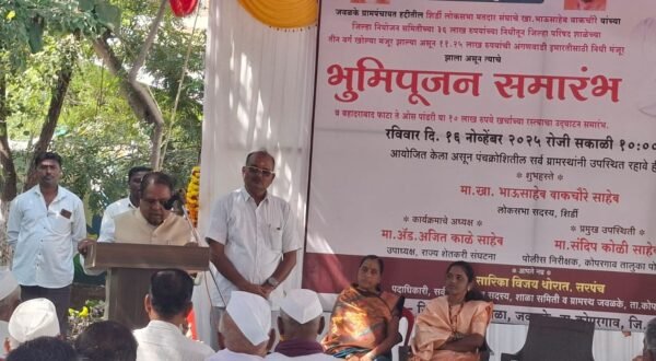 शिर्डी लोकसभा मतदार संघाचे खा.भाऊसाहेब वाकचौरे यांच्या जिल्हा नियोजन समितीच्या निधीतून जिल्हा परिषद शाळेच्या तीन वर्ग खोल्या,११.२५ लाख रुपयांची अंगणवाडी इमारत निधी मंजूर झाला त्याचे भुमिपूजन समारंभ व बहादराबाद फाटा ते ओस पांढरी या १० लाख रुपये खर्चाच्या रस्त्याचा उद्घाटन समारंभ खा.भाऊसाहेब वाकचौरे यांच्या शुभ हस्ते आज रविवार दि.१६ नोव्हेंबर २०२५ रोजी सकाळी ११ वाजता आयोजित केला होता.त्यावेळी कार्यक्रमाचे अध्यक्षस्थानी लोकसभा मतदार संघाचे समन्वयक मुकुंद सिनगर हे होते.