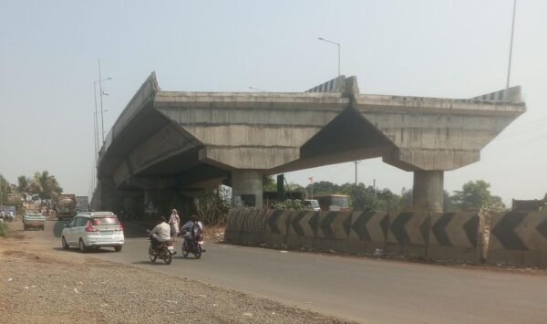 भूसंपादन न्यायिक वादामुळे रखडलेला पूल छायाचित्रात दिसत आहे.