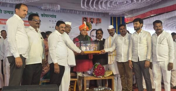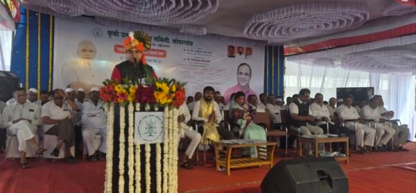 त्यावेळी पुढे बोलताना ते म्हणाले की,”जगात इंधन तुटवडा असताना कोल्हे कारखाना इंधन निर्माण करतो ही मोठी बाब आहे.कोपरगाव तालुक्याला मोठा राजकीय वारसा आहे.त्यावेळी मंत्री रावल यांनी शेतकऱ्यांच्या संस्थेत मतभेद नसायला हवा अशी अपेक्षा केली आहे.शेतकरी हा जगाचा पोशिंदा आहे देशाचा आर्थिक कणा आहे.त्यामुळे शेतकऱ्याला आम्ही १.७३ कोटींचा निवारा निर्माण करून दिला आहे.राज्यात आम्ही विविध योजना राबवत आहे.विकसित महाराष्ट्र ही वाटचाल मुख्यमंत्री देवेंद्र फडणवीस यांचे नेतृत्वाखाली सुरू केली आहे.शेतकऱ्यांना कितीही हजारो कोटी रुपये लागो पण आम्ही वीज मोफत आम्ही दिली आहे.लाडकी बहीण योजना अद्याप सुरू आहे.विरोधकांनी टीका केली पण ती आम्ही खोटी ठरवली आहे.शेतकऱ्यांना आम्ही सहा हजार रुपये,शेतकऱ्यांना दिवसा वीज देण्यासाठी सौर पंप दिला आहे.शेतकऱ्यांना कर्जमाफी सुद्धा जाहीर केली आहे.नियमित कर्ज भरणाऱ्यांना सुद्धा ५० हजार रुपये दिले जाणार आहे.शेतकऱ्यांना जादा पिकले तरी अडचण आहे.जादा पिकले तरी अडचण आहे.म्हणून शेतकरी जगला पाहिजे या साठी हे सरकार काम करत आहे.शेतकऱ्याच्या शेतमाल’ इ नाम’ या पोर्टलवर विकता येणार आहे.निर्यात तसेच मूल्यासाखळी निर्माण करत आहे.मूल्यवर्धन साठी काम करत आहे.गतवर्षी ०१ हजार कोटी रुपये खर्च केले आहे.कोपरगावात लॉजिस्टिक सारखा एखादा उद्योगाला निधी द्यायला तयार आहे.वाढवण बंदर हे जगातले सर्वात मोठे बंदर निर्माण करत आहोत.राज्याने सर्वात जास्त शेतकरी माळ विकत घेतला आहे.त्यात सोयाबीन,मका,कापूस खरेदी करून दहा हजार कोटी रुपये शेतकऱ्यांना दिले आहे.कांदा पिकाबद्दल कायम अडचण निर्माण होत आहे.म्हणून लघु व दीर्घकाळासाठी प्रकल्प राबवणार आहे.त्यासाठी कांदा महाबँक निर्माण करणार आहे.साठवणूक,पॅकिंग,पेस्ट निर्माण करून त्याला न्याय देणार आहे. ब्रॅण्डिंग,पॅकिंग, सॉर्टिंग मशीन उपलब्ध करून देऊन मूल्यवर्धन करणार आहे. दुबईशी करार करून कांद्याला भाव देण्यासाठी प्रयत्न करणार आहे.कोपरगाव बाजार समितीचे काम चांगले आहे.आगामी काळात एक ते दीड वर्षात लवकरच या शेतकरी भवनाचे लोकार्पण करू असे आश्वासन दिले आहे.