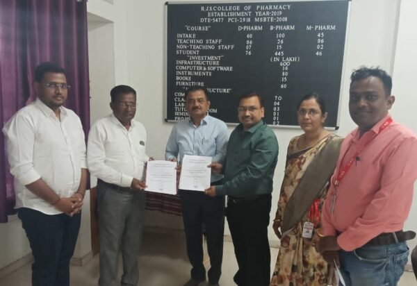 याबाबतचे सविस्तर वृत्त असे की,”सन-2019 मध्ये स्थापन झालेल्या आर.जे.एस.कॉलेज ऑफ फार्मसीचा उद्देश हा औषधशास्त्र क्षेत्रात शिक्षण,संशोधन व प्रशिक्षण प्रदान करणे आणि समाजाच्या सेवेसाठी सक्षम,गुणवत्तापूर्ण व्यावसायिक घडविणे असा ठरविण्यात आला होता.होल्डन मेडिकल लॅबोरेटरीज ही अत्याधुनिक व अत्युच्च तंत्रज्ञानाचा वापर करून कॅप्सूल्स,टॅब्लेट्स,पावडर इत्यादी विविध उच्च गुणवत्तेच्या औषधी फॉर्मुलेशन विकसित करणारी आघाडीची कंपनी आहे.तर ही कंपनी अँटिडायबेटिक,अँटिहायपरटेन्सिव्ह आणि अँटी-इन्फ्लेमेटरी प्रकारचे औषधे तयार करून त्यांची युरोपसह आंतरराष्ट्रीय बाजारपेठेत निर्यात करत आहे.औषधनिर्मिती क्षेत्रातील तज्ज्ञता आणि गुणवत्तेमुळे कंपनीला जागतिक आरोग्य संघटना,जी.एम,पी.आय.एस. ओ.9001-2001,एफ.डी.ए.यांसारखी राष्ट्रीय व आंतरराष्ट्रीय प्रमाणपत्रे तसेच अनेक पुरस्कार प्राप्त झाले आहेत.