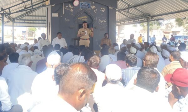 कोपरगाव शहर पोलिस ठाण्याचे पोलिस निरीक्षक रामकृष्ण कुंभार उपस्थित ग्रामस्थांना मार्गदर्शन करताना.