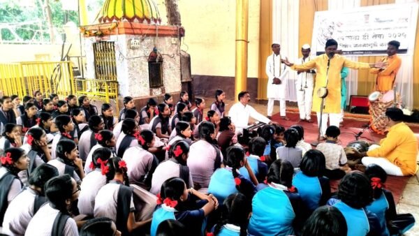 कोपरगांव शहरातील श्री भवानी देवी मंदिरात स्टार महाराष्ट्राचे पुरस्कार प्राप्त,झी मराठी फेम,राष्ट्र शिवशाहीर सुनील चिंचोलीकर आणि कलापथक यांचा केंद्रीय संचार ब्यूरोचे पी.फणीकुमार यांचे मार्गदर्शनाखाली “स्वच्छता ही सेवा” २०२५ अंतर्गत देवीचा जागर आणि स्वच्छता समाजप्रबोधनाचा विशेष कार्यक्रम मोठ्या उत्साहात सादर करण्यात आला आहे.