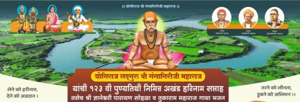 योगिराज सदगुरु श्री गंगागिरीजी महाराज यांची १२३ वी पुण्यतिथी निमित्त अखंड हरिनाम सप्ताह तसेच श्री ज्ञानेश्वरी पारायण सोहळा व तुकाराम महाराज गाथा भजन आदी धार्मिक उपक्रम मिती मार्गशीर्ष कृ ।। ०८ शके १९४७, शुक्रवार दि. १२ डिसेंबर २०२५ ते मार्गशीर्ष कृ ।। ३० शके १९४७,शुक्रवार दि.१९ डिसेंबर २०२५ रोजी संपन्न होत आहे.